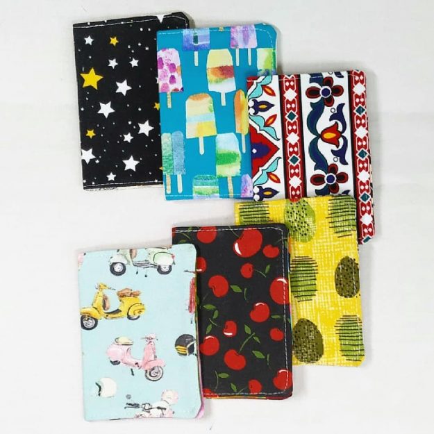 Assortiment de porta targetes, perquè l’organització no està renyida a portar-ho amb colors i motius divertits. Descripció : Dimensió de 6 x 10 cm Confeccionats amb tela de cotó 100%