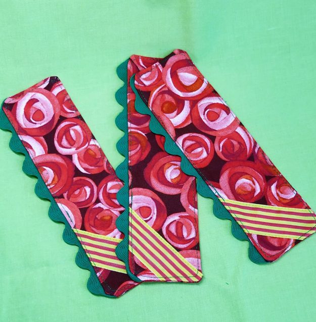 Punts de llibre per Sant Jordi. Si ja tens la rosa i el llibre, res millor que un punt de llibre per a no perdre’s entre capítols. Descripció Punt de llibre de 5 cm x 15 cm Confeccionats amb tela de cotó 100%