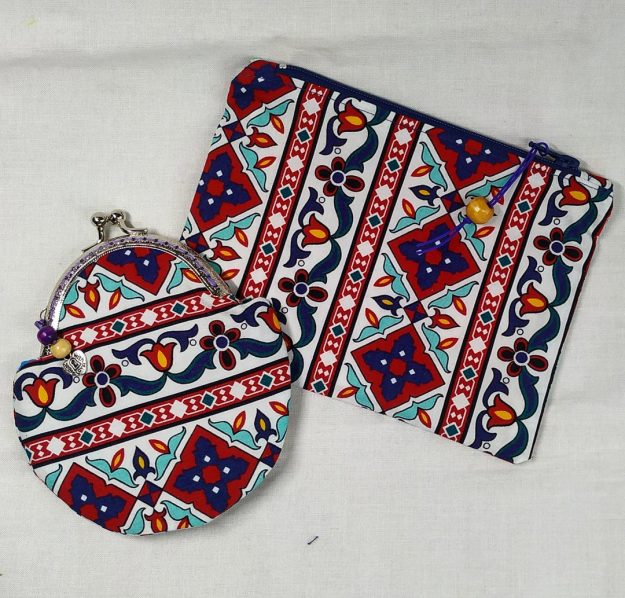 Pose’m alegria en temps de Pandèmia. Un portamonedes i un útil mini neceser per portar tot alló petit que tens escampat per la bossa. Descripció Portamonedes de boca metàlica Amplada de 10 cm x 15 cm de llargada Confeccionat en doble tela de cotó 100% i embuatat. Mini Neceser amb cremallera Amplada de 17 cm…